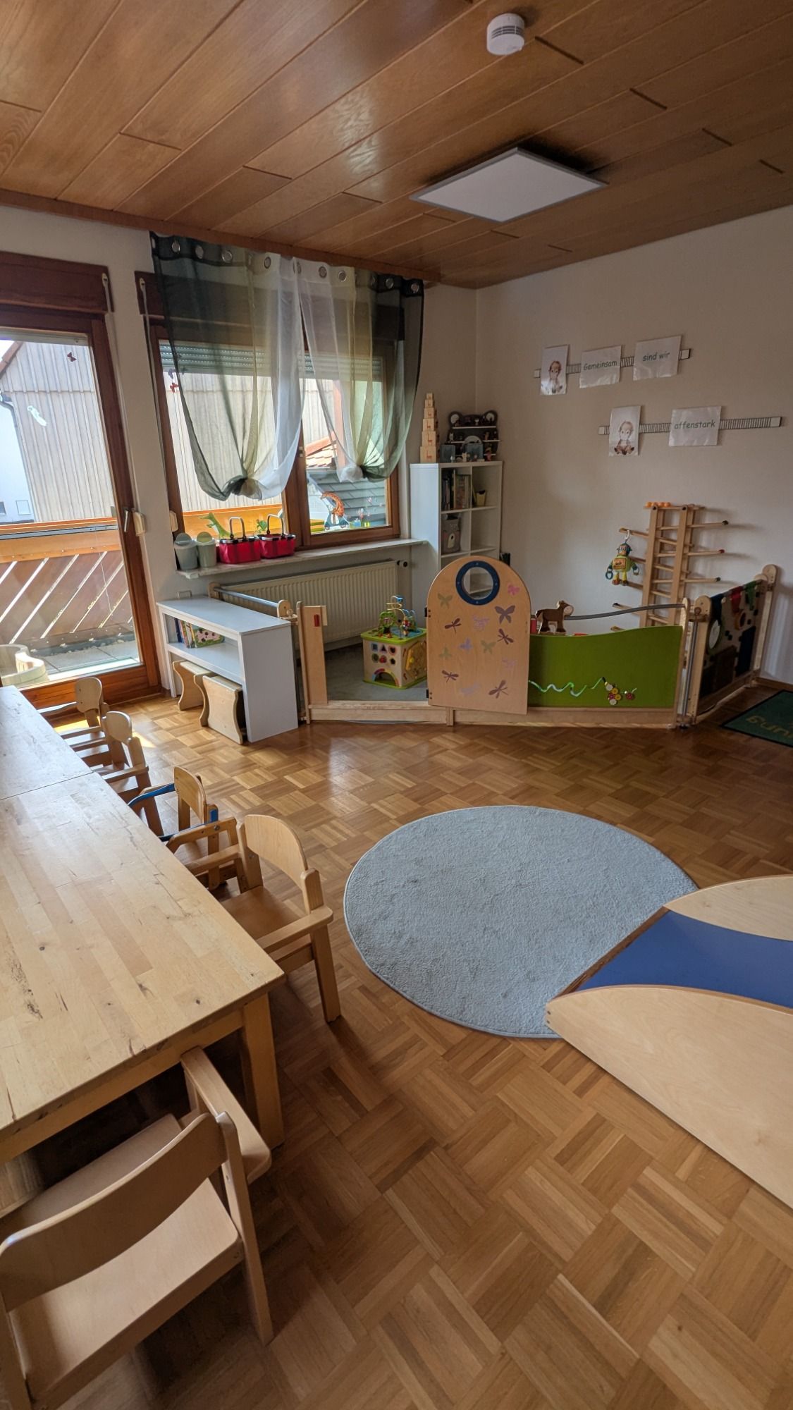 Der Gruppenraum ist das Herzstück unserer Betreuung: ein großzügiger, liebevoll gestalteter Raum, in dem gemeinsames Spielen, Entdecken und Miteinander ganz selbstverständlich stattfinden.