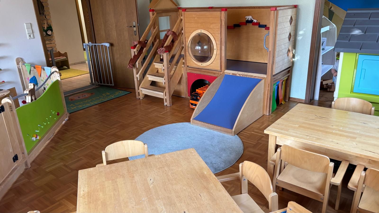 Unsere Tische laden zum Basteln, Essen, Kneten, Spielen und Puzzeln ein. In verschiedenen Ecken können die Kinder Fahrzeuge ausprobieren, Bücher entdecken oder sich einfach frei bewegen – ganz nach ihrem eigenen Tempo und Interesse.